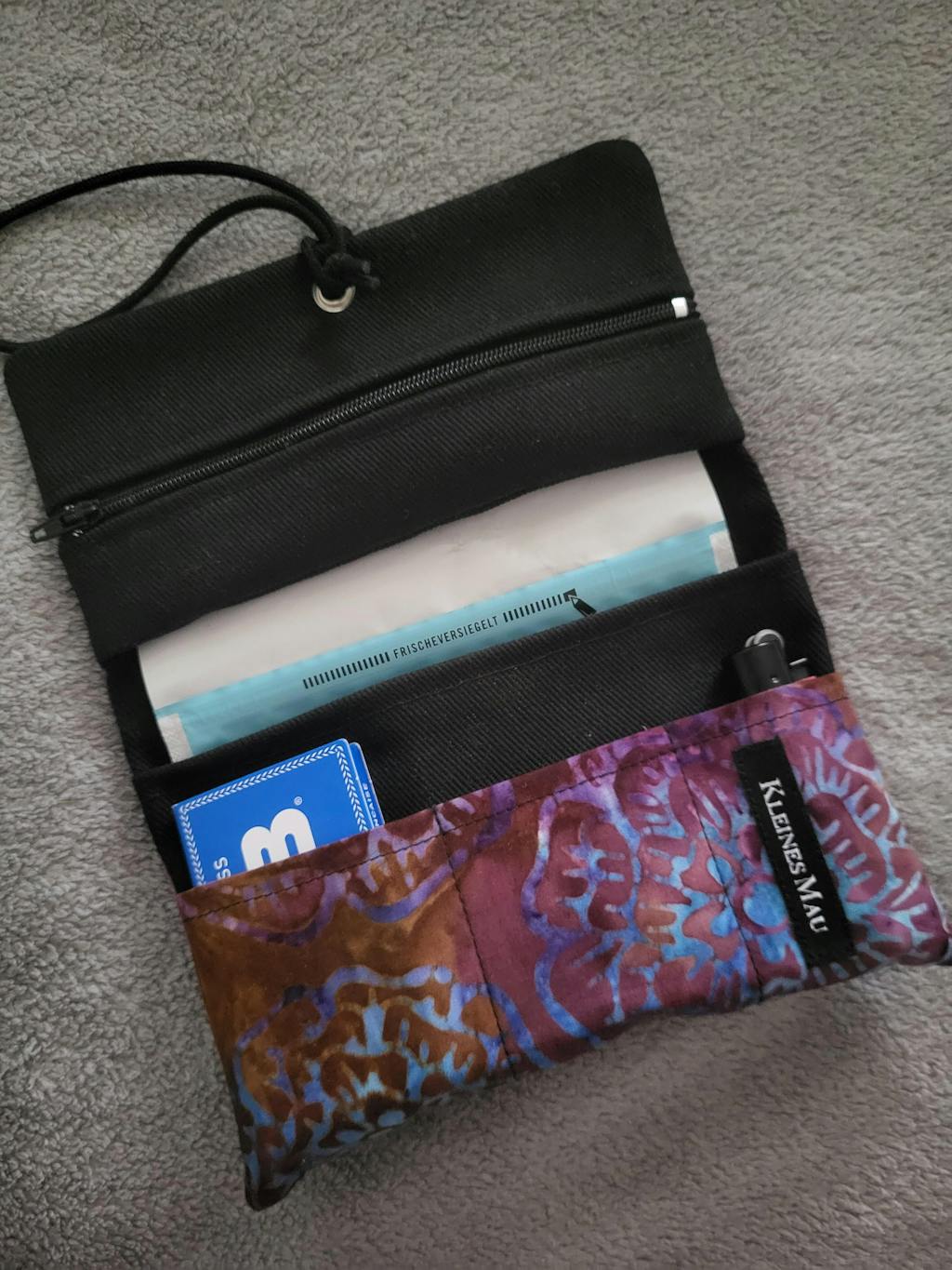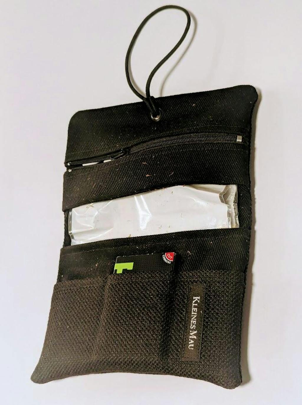 Sehr gut verarbeitete Tabaktasche mit Platz für Papier und Feuerzeug und eine mit einem Reißverschluss versehene Tasche für die Filter. Ebenso hat mir das Paket mit der Danke Schön Karte den Tag versüßt :)