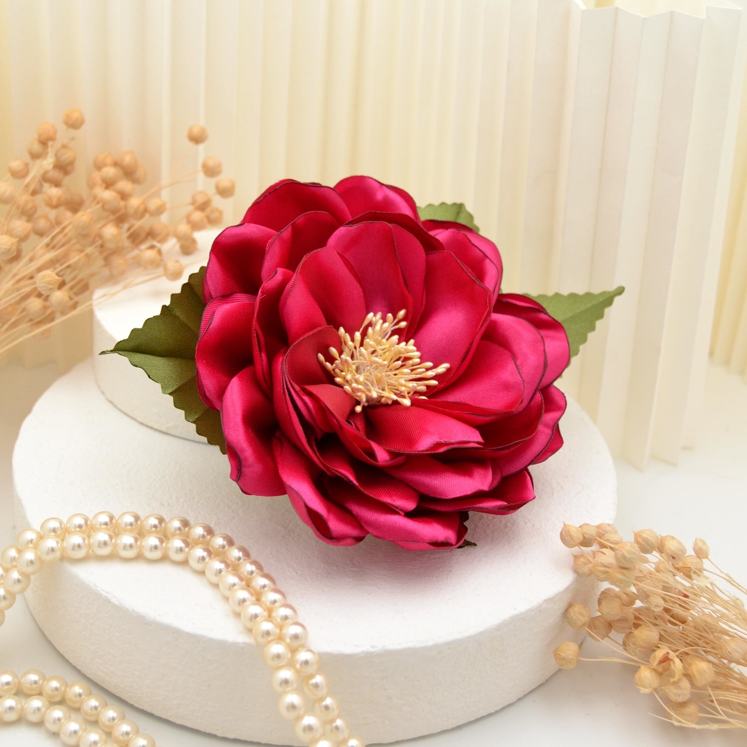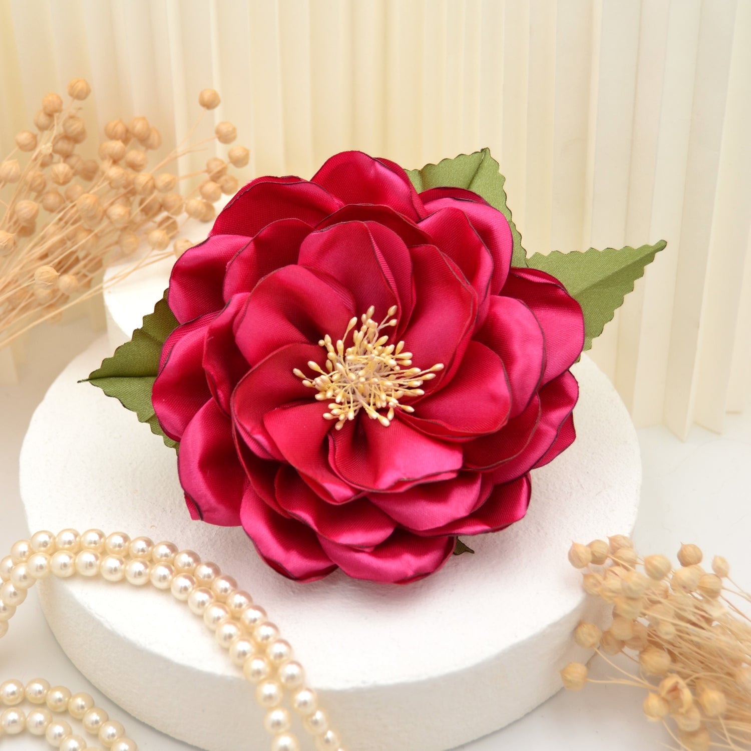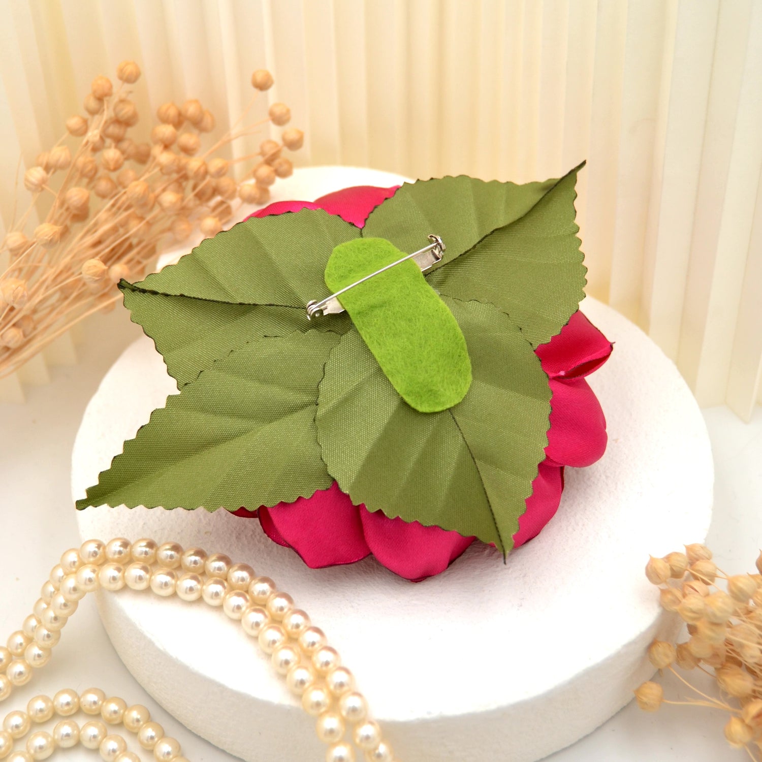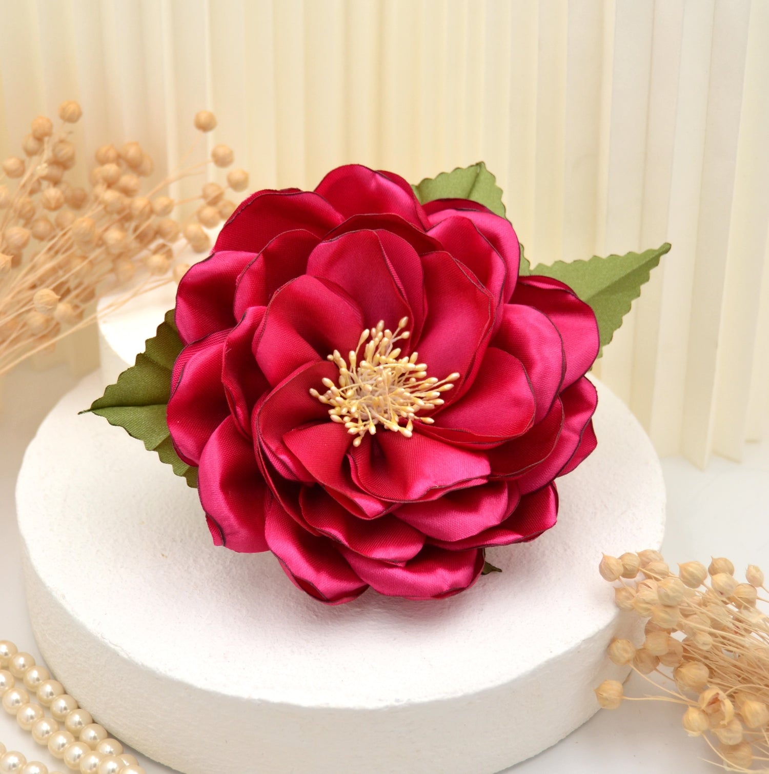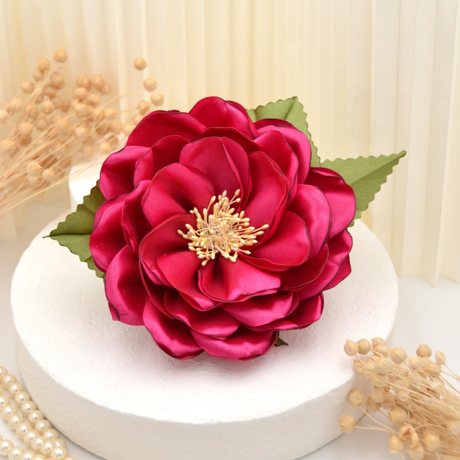 Große pinke Satin Blumenbrosche "Fantastic Fuchsia"" | Handgefertigte pinke Blüte zum Anstecken