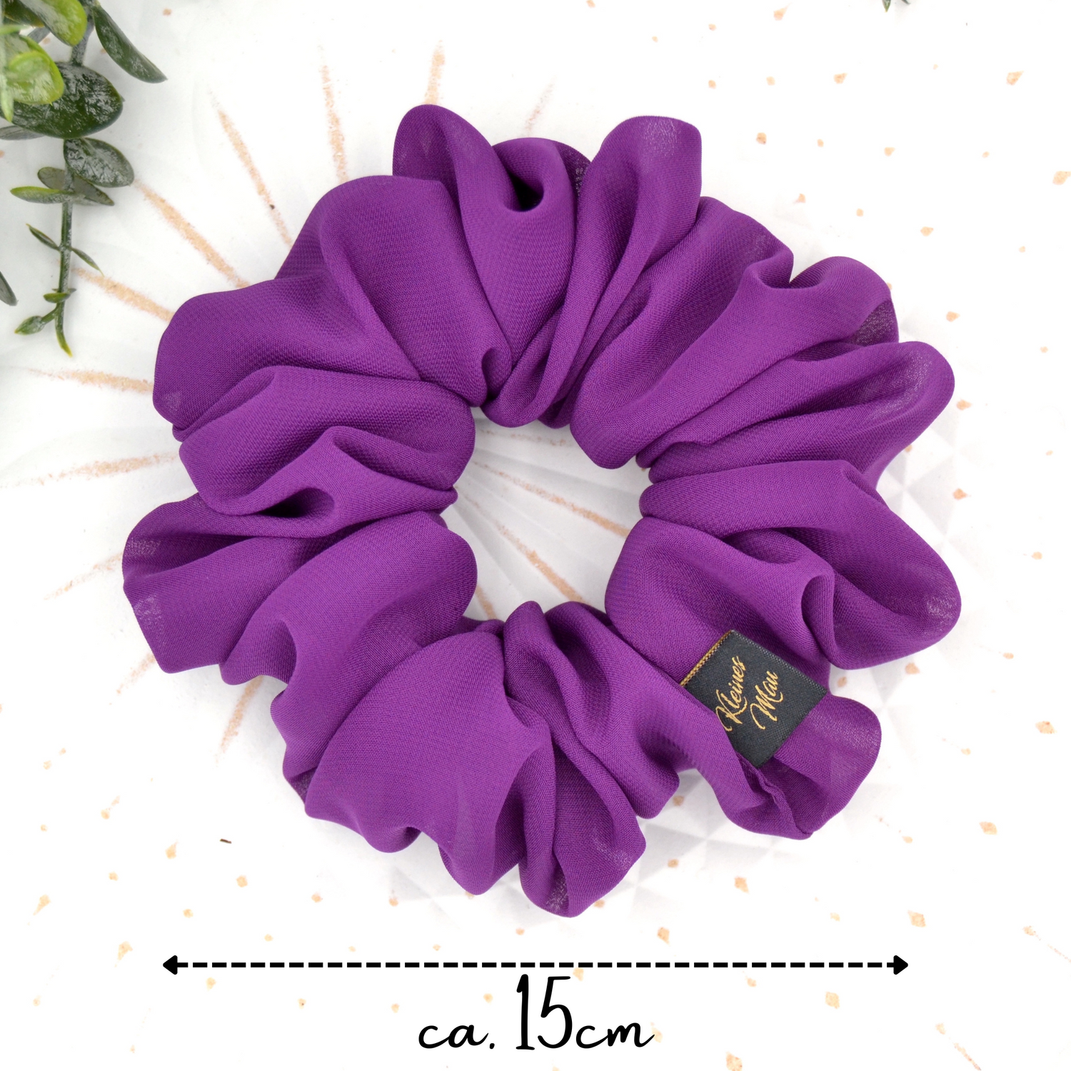 Dieses voluminöse Haargummi aus zartem Chiffon in leuchtendem Violett ist perfekt, um jeder Frisur einen Hauch von Power zu verleihen. Das weiche und fließende Material fühlt sich wunderbar an und sieht hervorragend aus. Farbenfrohsinn für den Kopf, den ganzen Tag bis in die laue Sommernacht oder zur Halloween Party. Dieses Haargummi ist die perfekte Ergänzung deiner Accessoires.