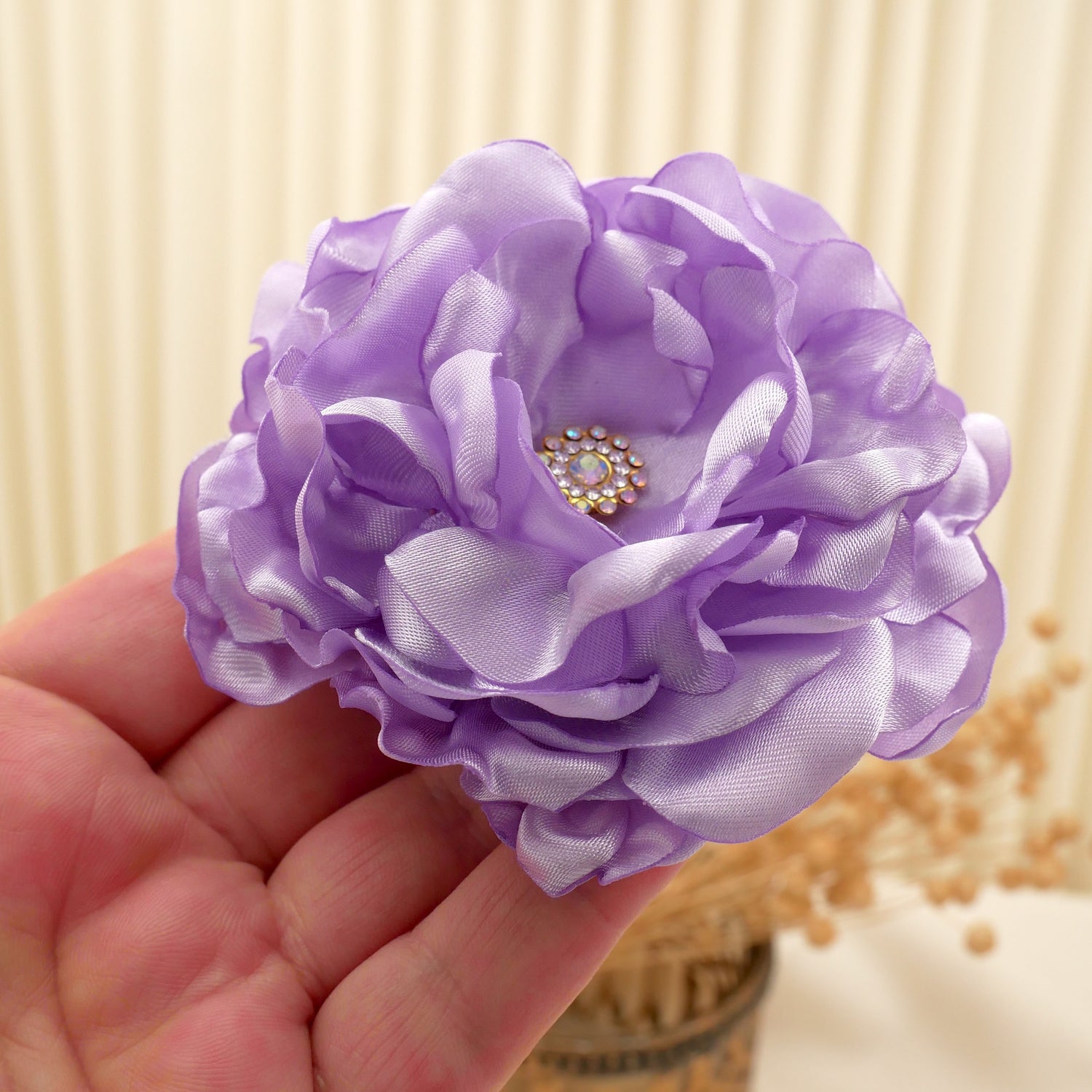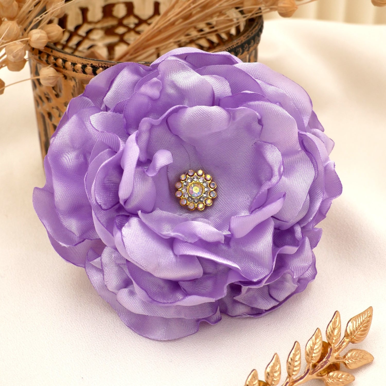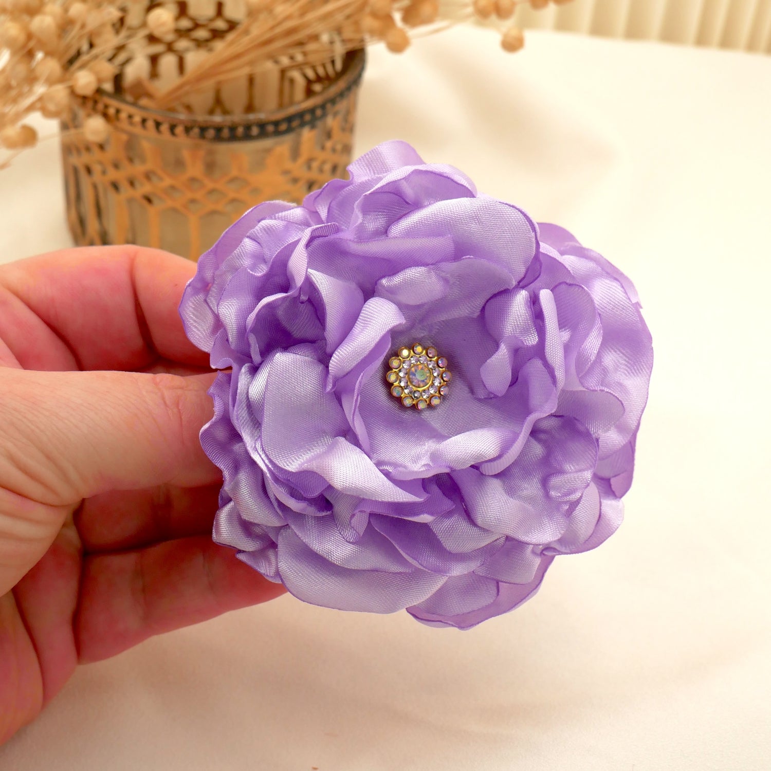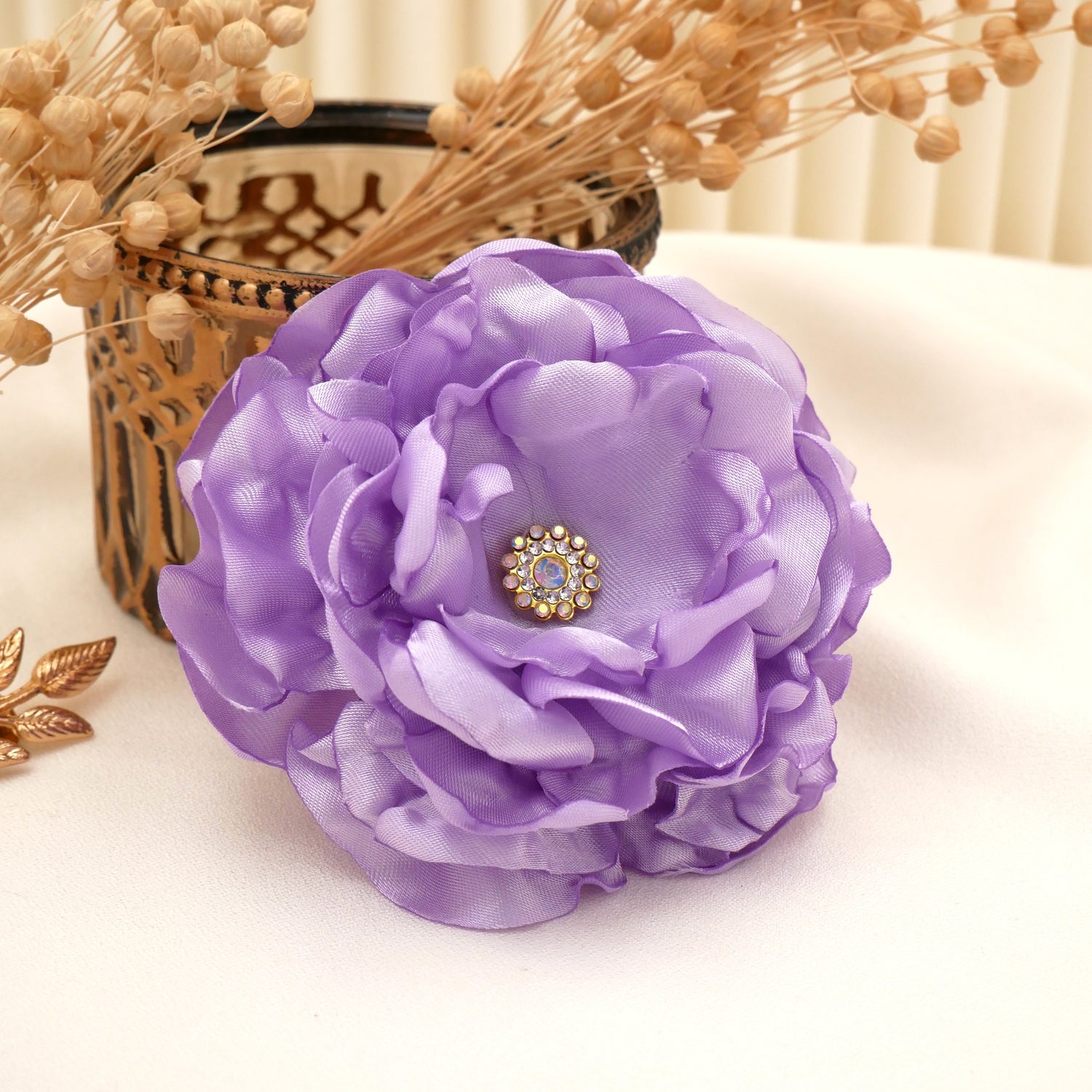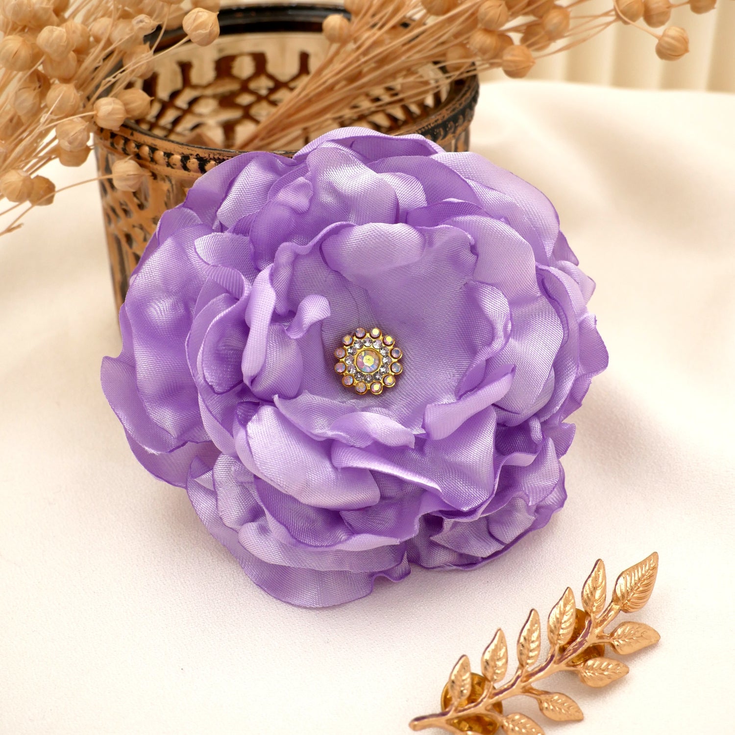 Dieser strahlende lavendelfarbene Blüten-Haarclip aus Satin ist das ideale Accessoire für alle, die feminine und strahlende Akzente lieben.