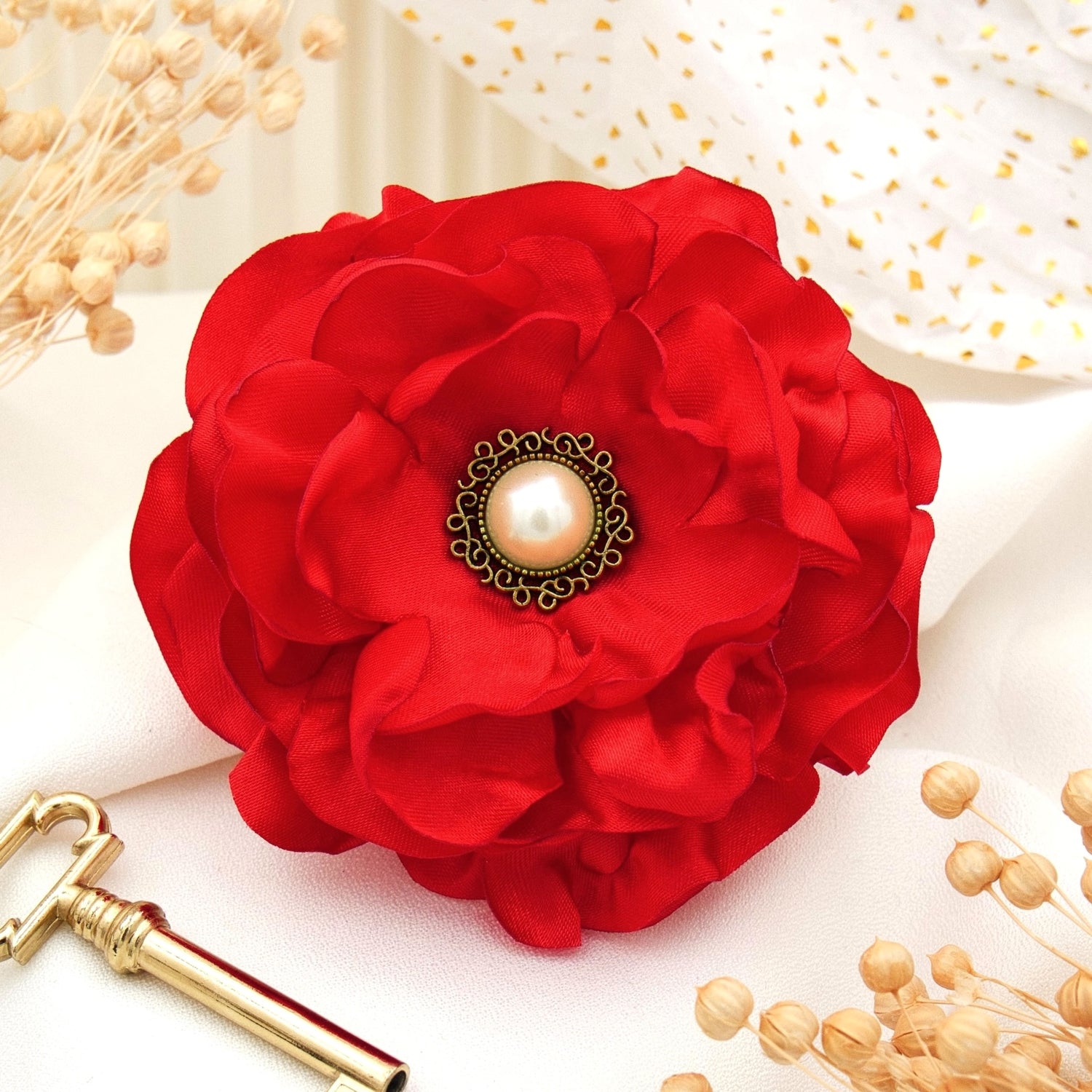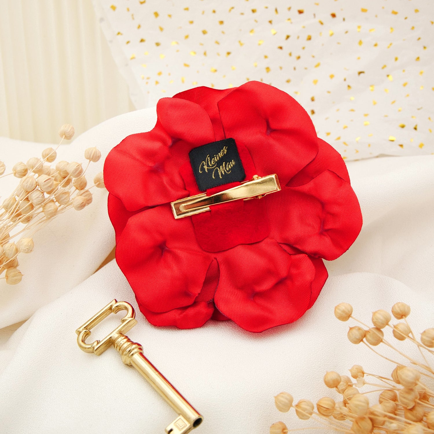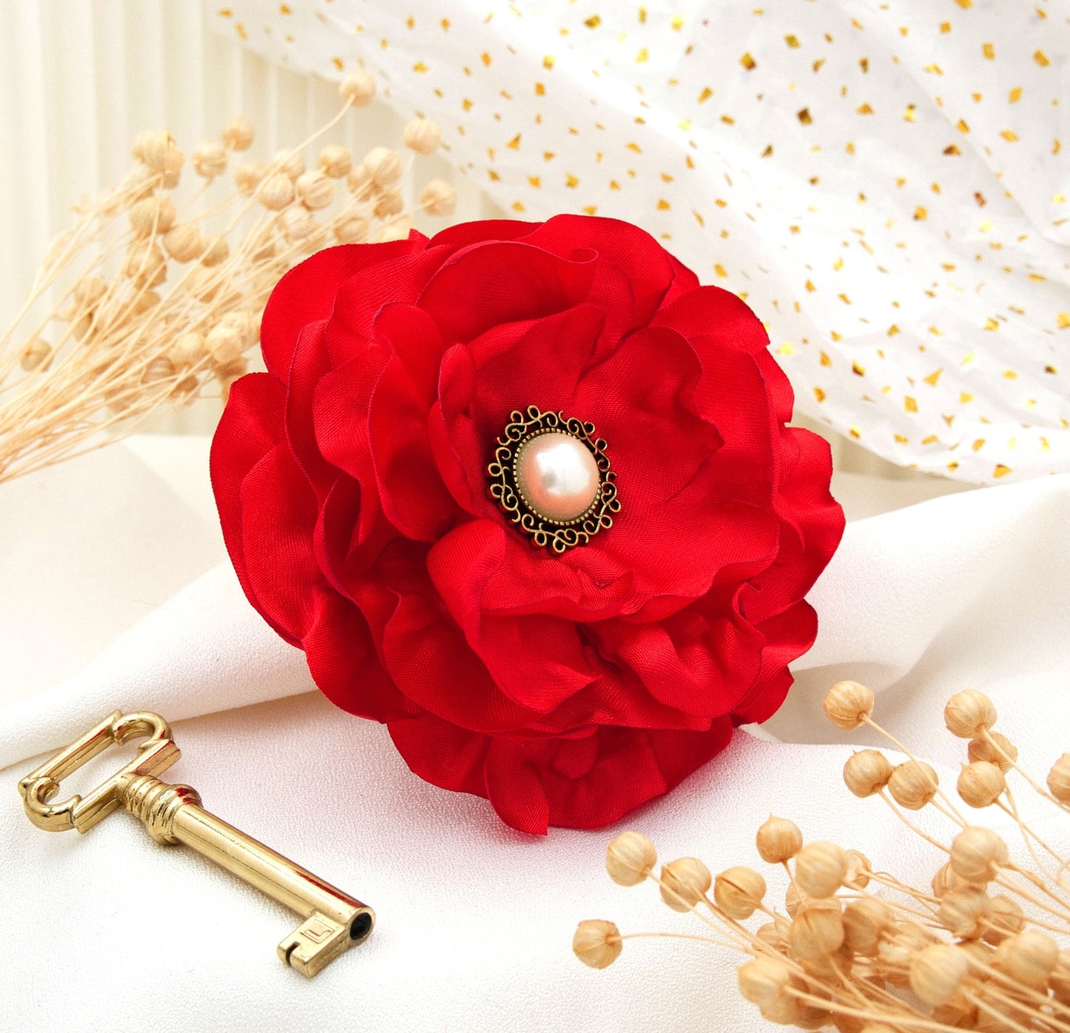 Dieser strahlende, rote Blüten-Haarclip aus Satin ist das perfekte Accessoire für feminine und romantische Herzen.