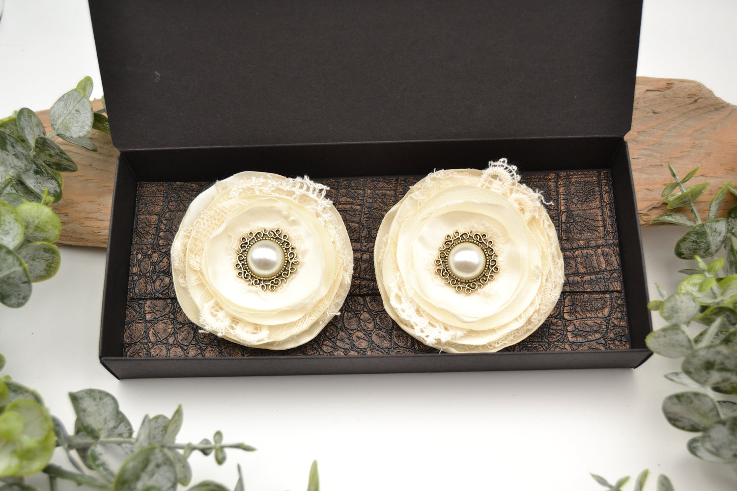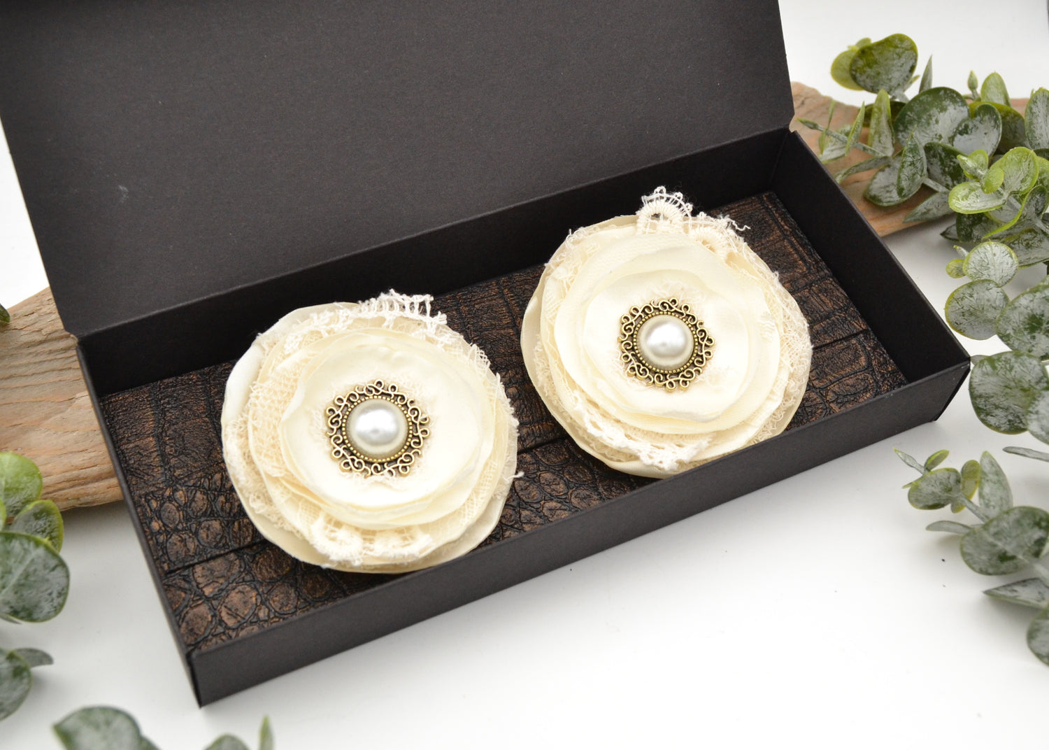 Die romantischen Blüten wurden aus hochwertigen Materialien liebevoll gefertigt und mit einer Krokodilklemme ausgestattet. So kannst Du sie im Haar tragen wo es Dir beliebt.