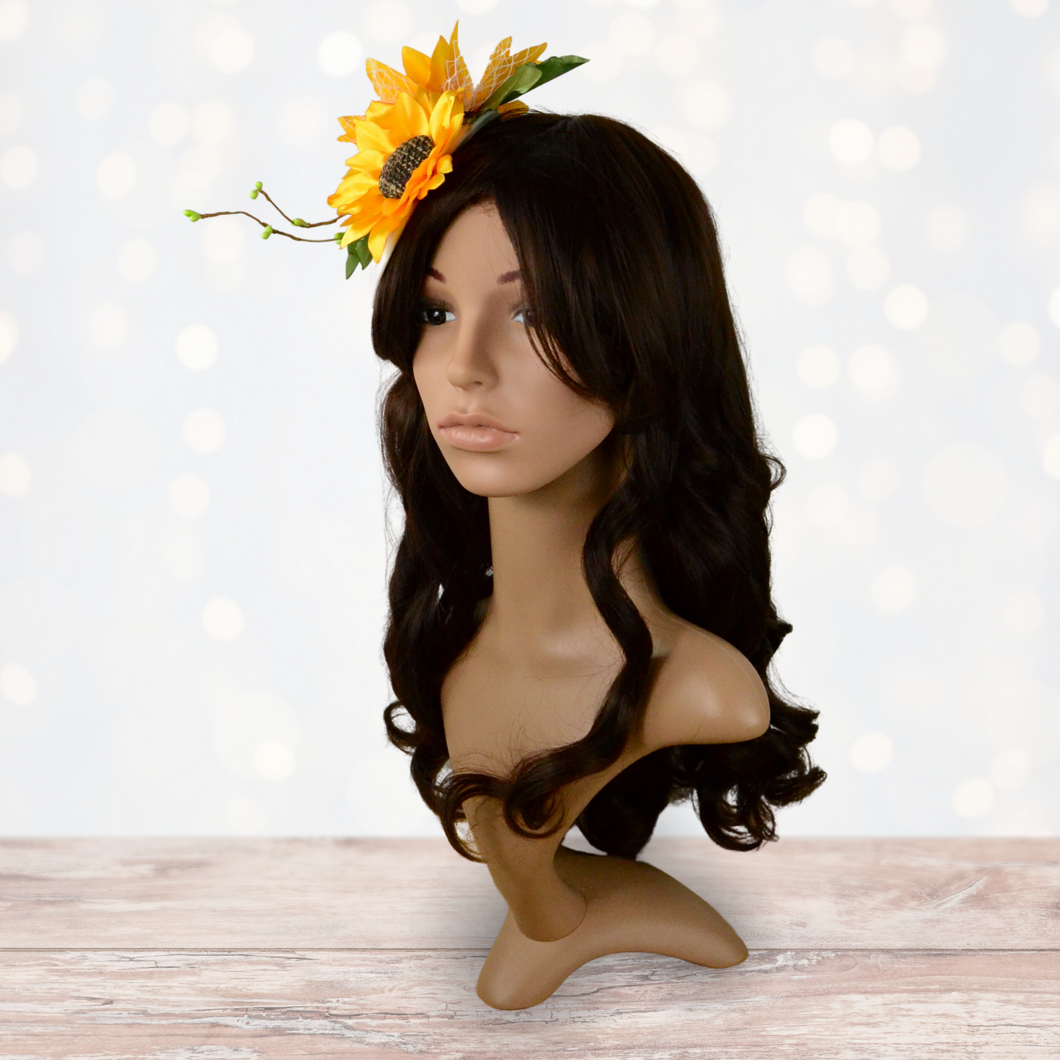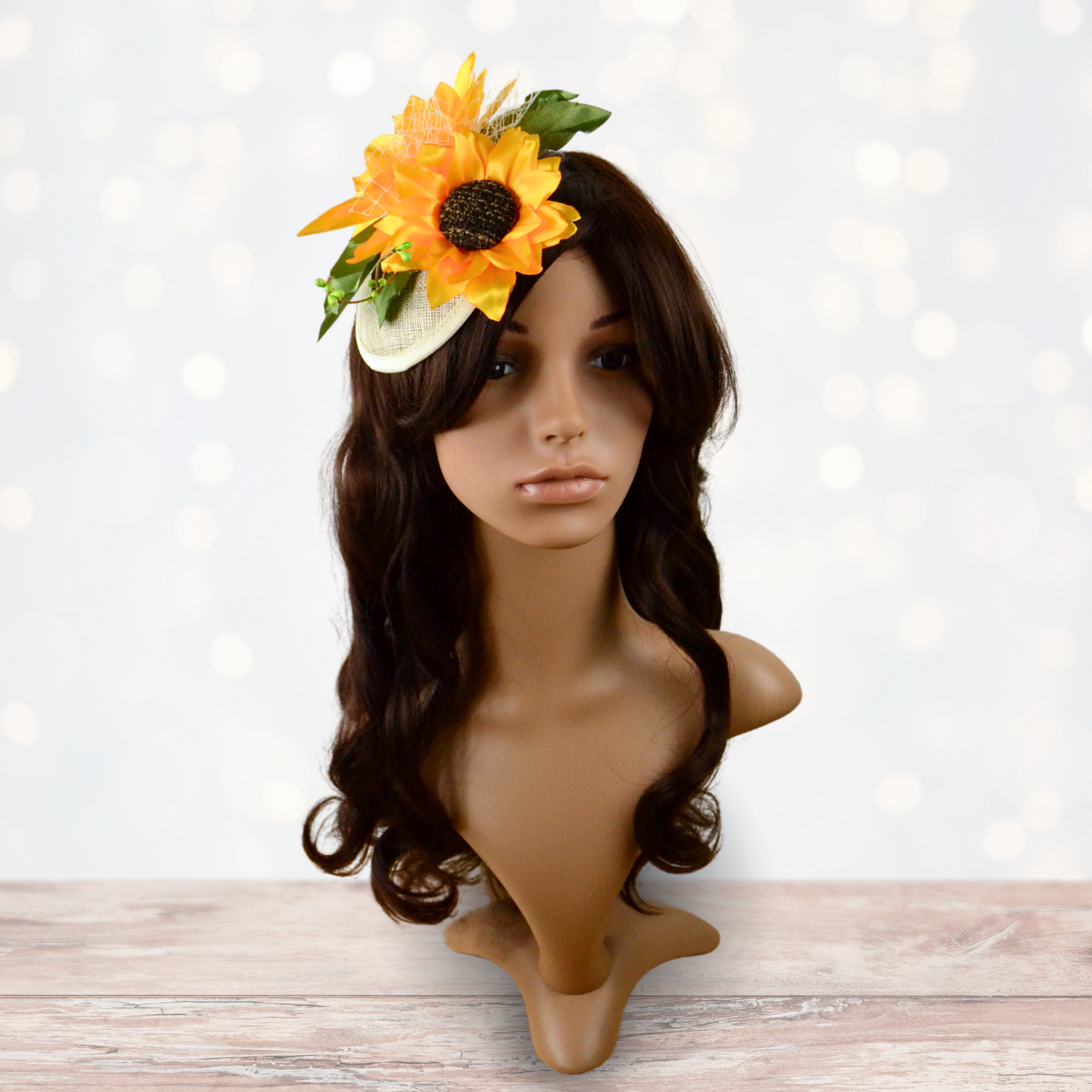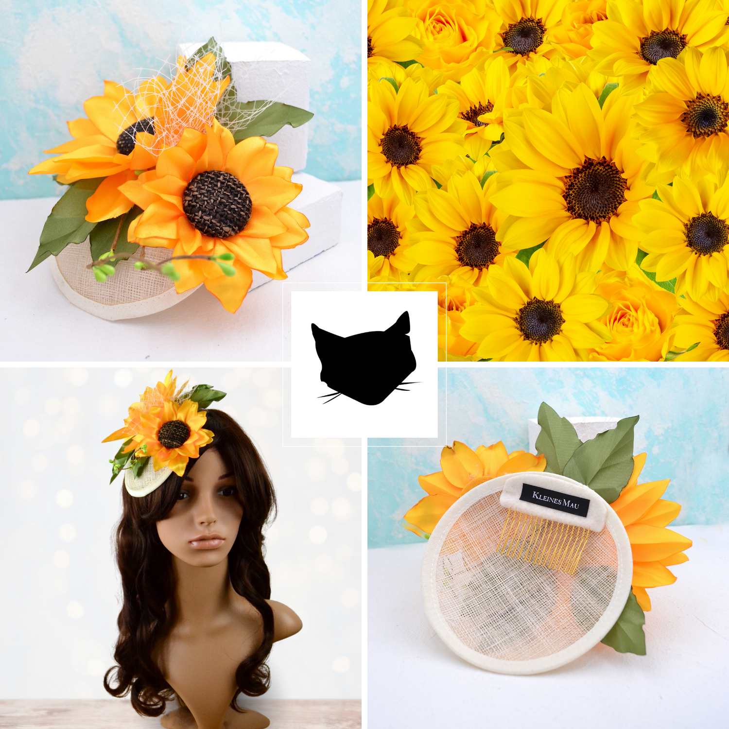 Handgefertigter Fascinator "Sunny Delight" mit Sonnenblumen