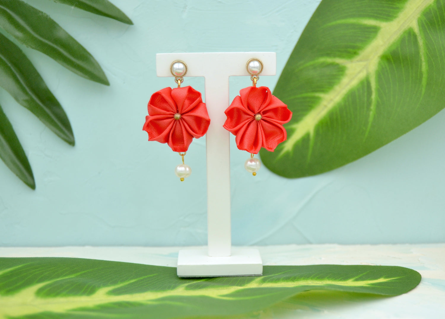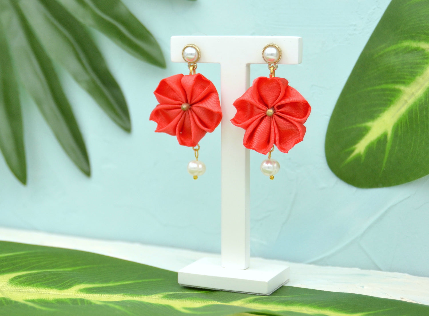 Die rote Farbe der Blüten bildet einen kräftigen und auffälligen Kontrast zu den goldfarbenen Ohrsteckern und Perlen und macht diese Ohrringe zu einem perfekten Statement-Stück. Wenn Sie auf der Suche nach einzigartigen und charmanten Ohrringen sind, ist dies die perfekte Wahl.