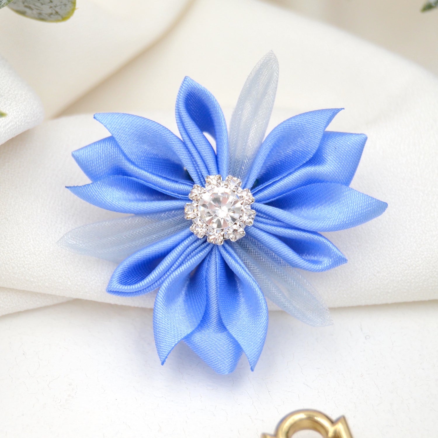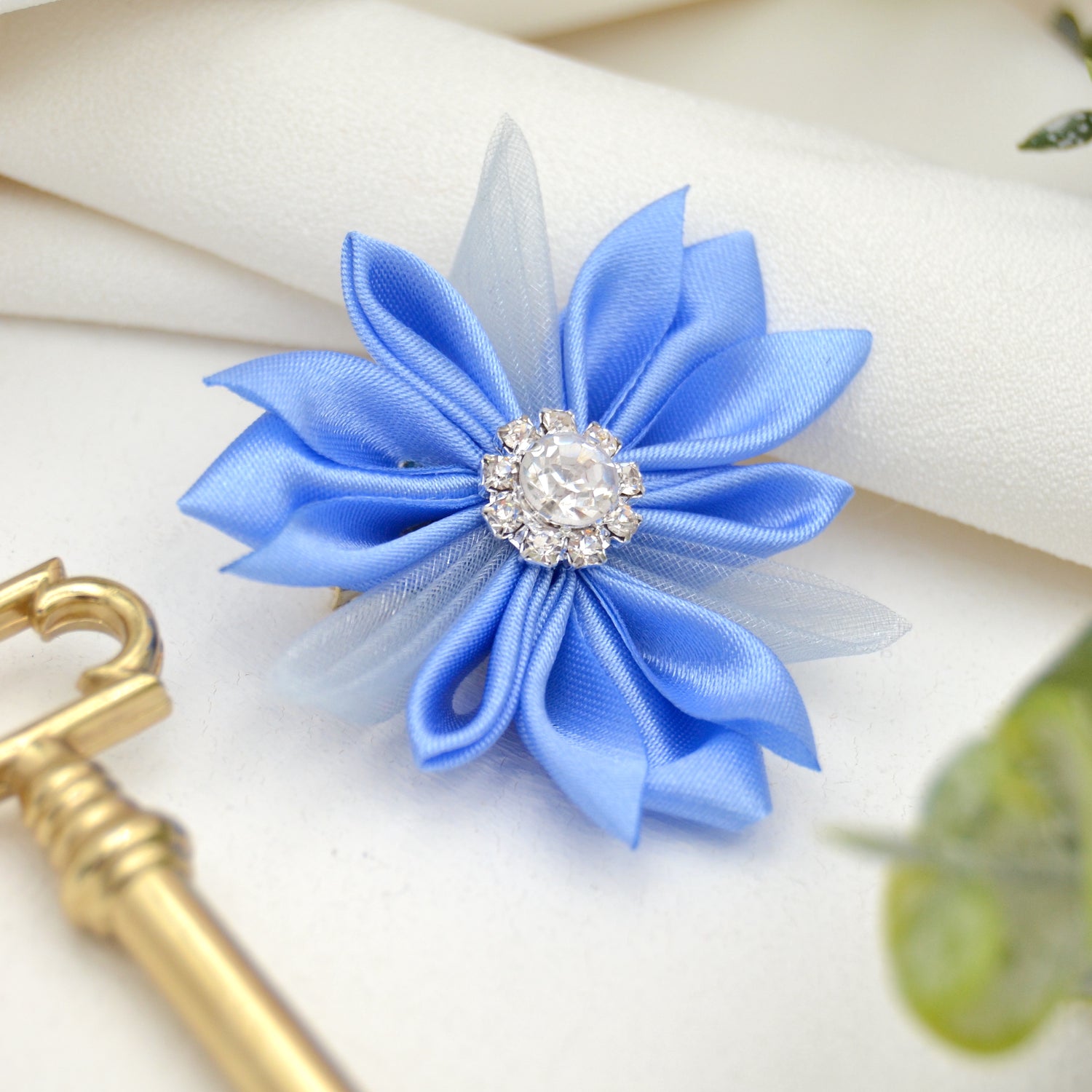 Brosche "Icy Blue" - Hellblaue Satin Ansteckblüte mit Broschennadel
