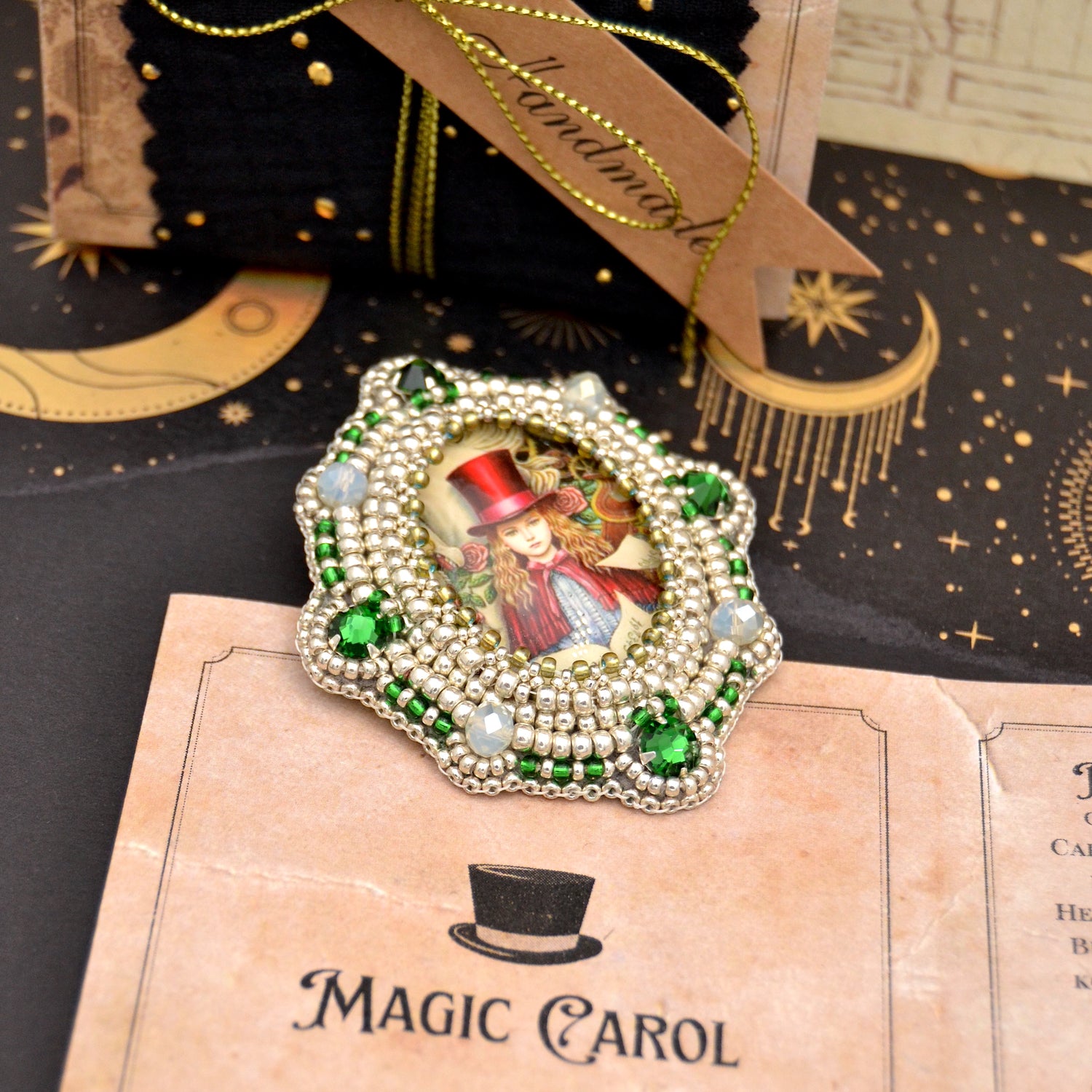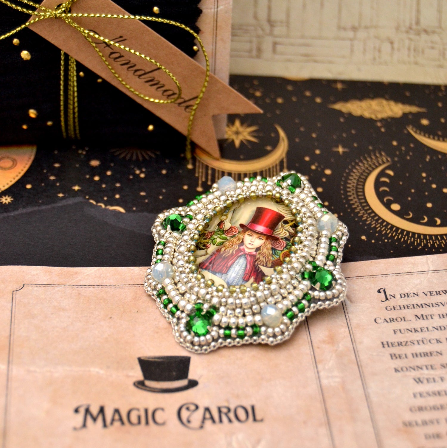 Perlen Brosche "Magic Carol" Perlenbestickte Brosche mit Mädchen - Magic Carols Collection