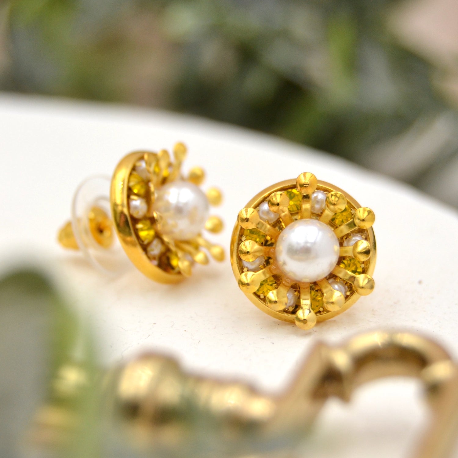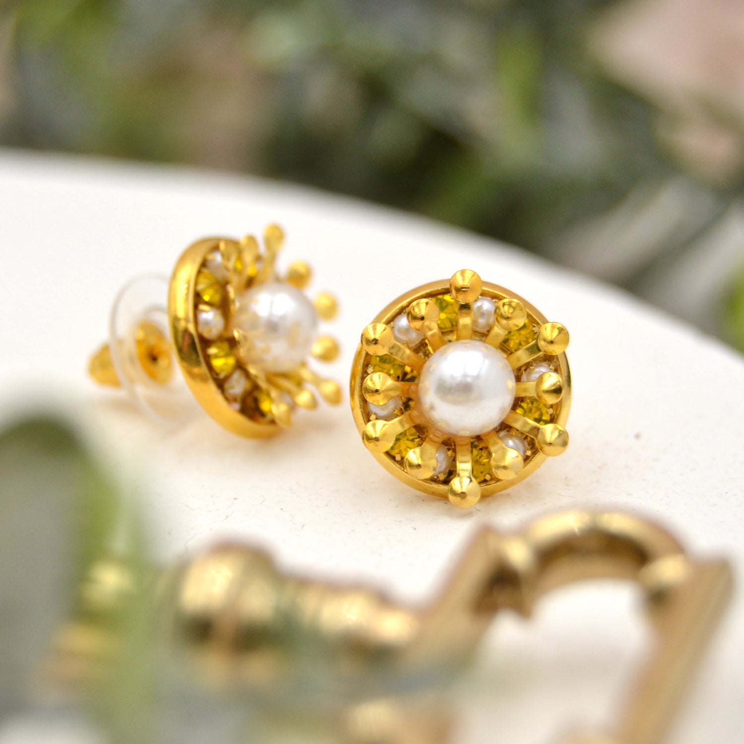 Lass dich verzaubern von der (künstlichen) Perle in der Mitte, die von einem goldenen Krönchen, kleinen Perlen und funkelnden Strasssteinen umgeben ist und diesem Paar Ohrringe einen ikonischen Glanz verleiht. Ein perfektes Geschenk für deine Liebste oder um dir selbst eine Freude zu machen.
