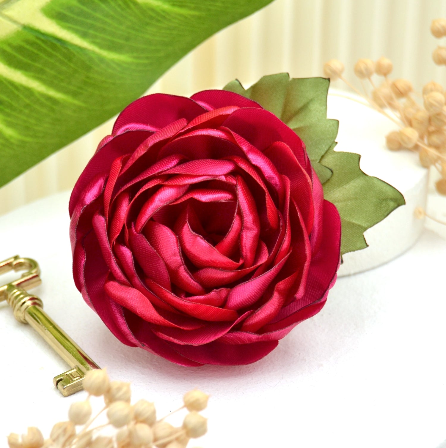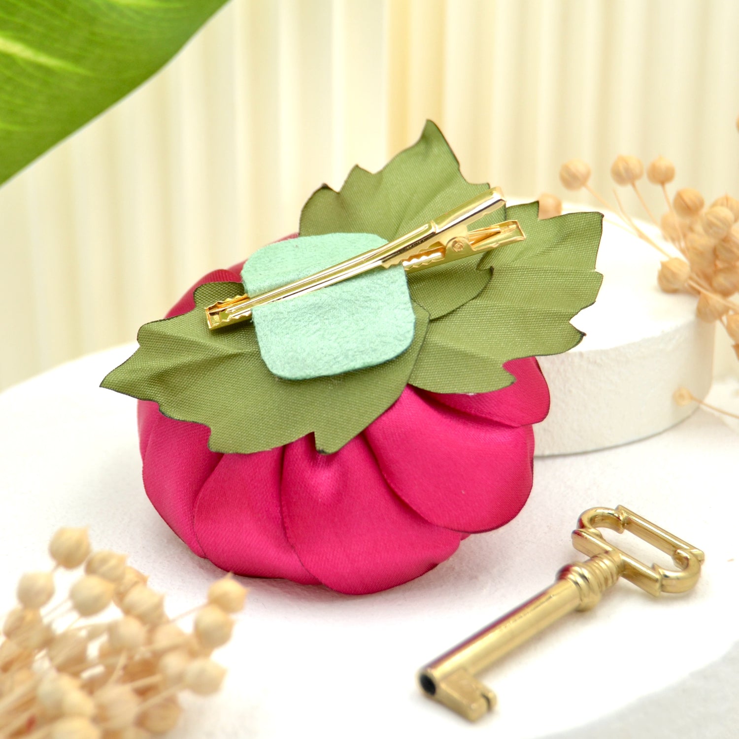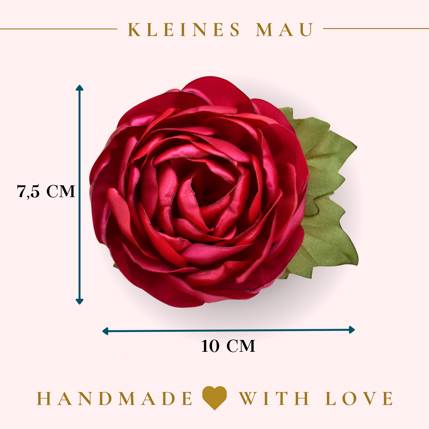 Haarclip "Deep Pink" mit pinker Rose aus Satin Stoff