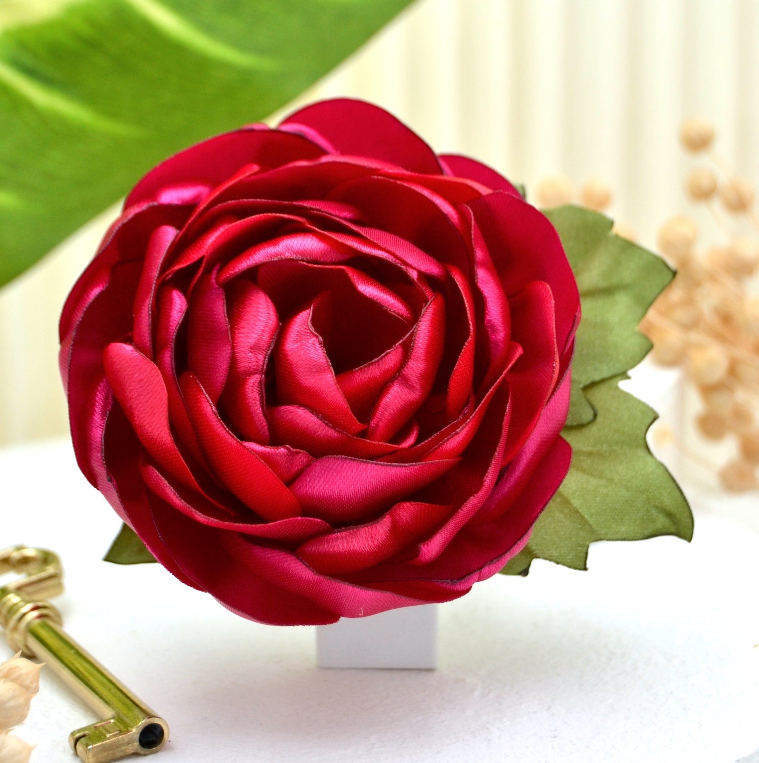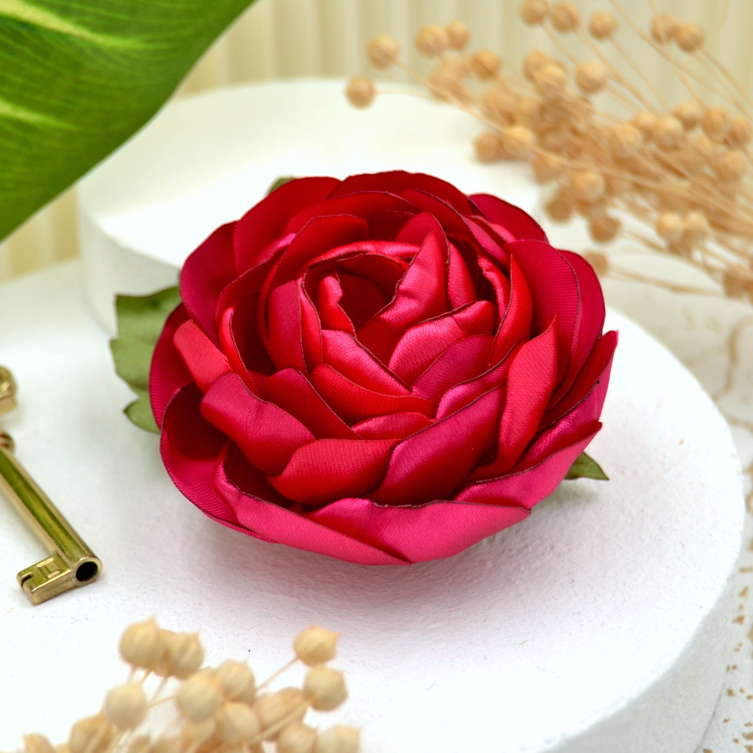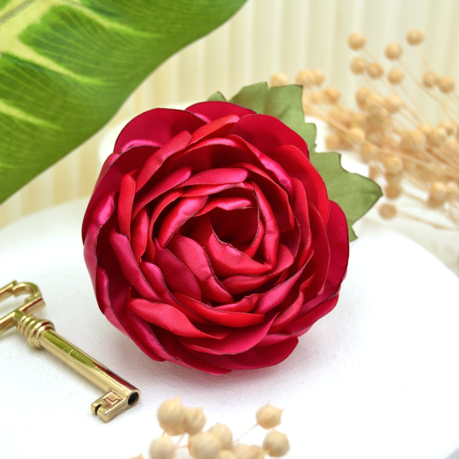 Diese handgefertigte, romantische Rose aus strahlendem pinkem Satin verleiht jeder Frisur eine Prise von Amour fou!