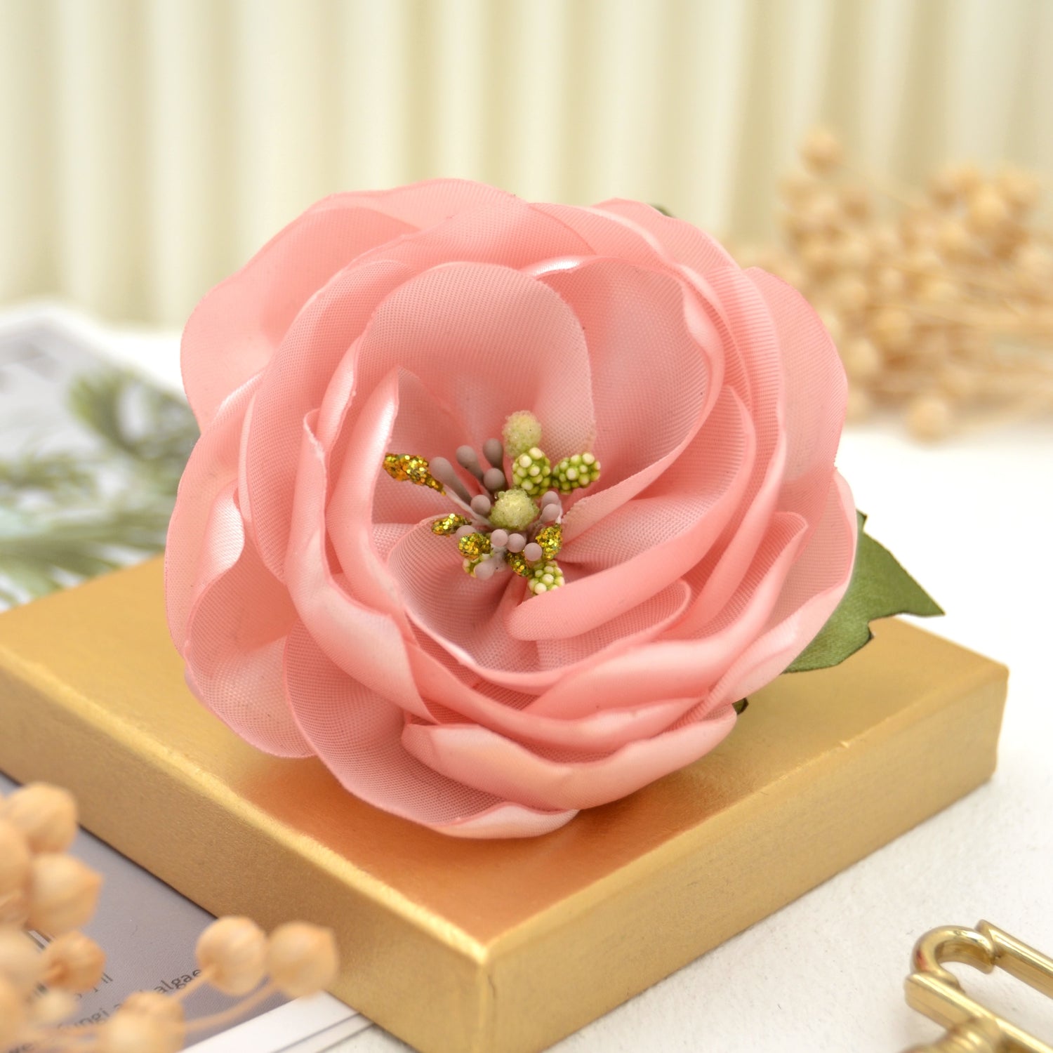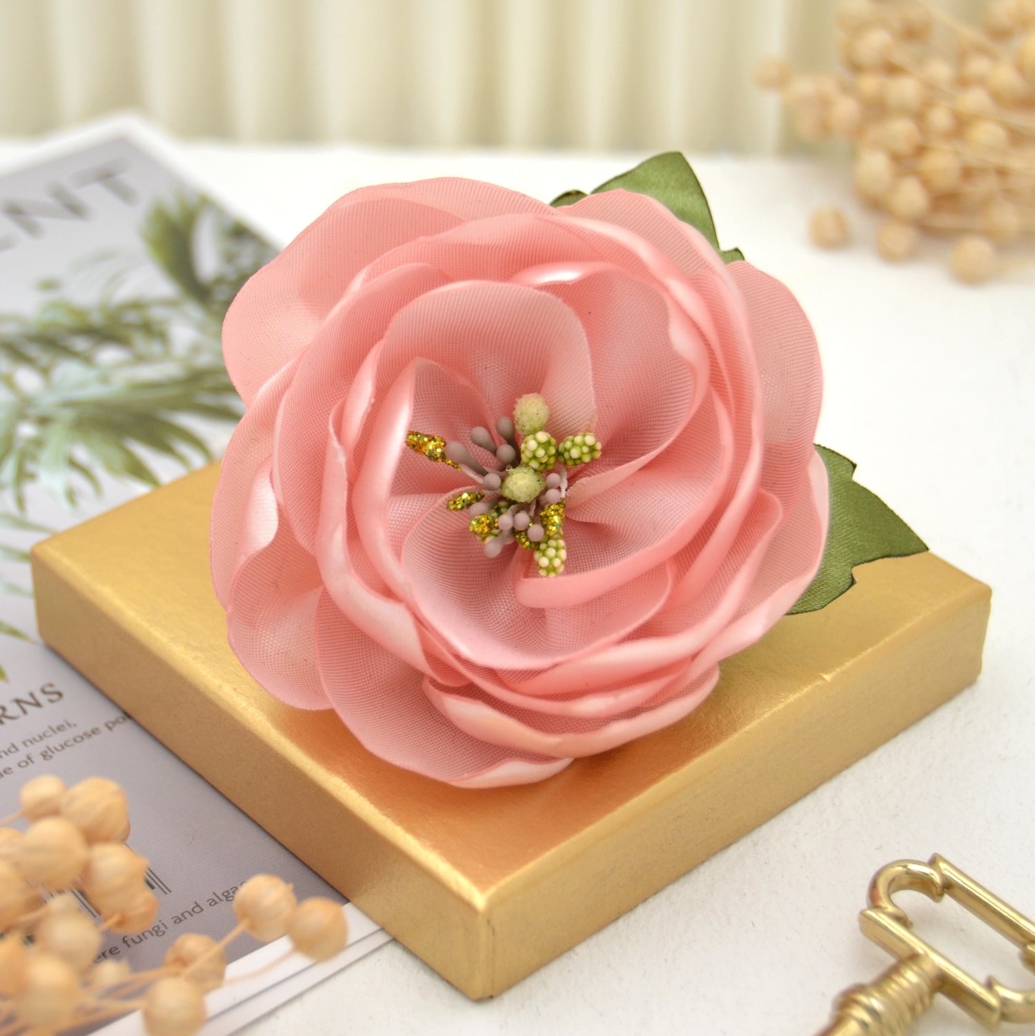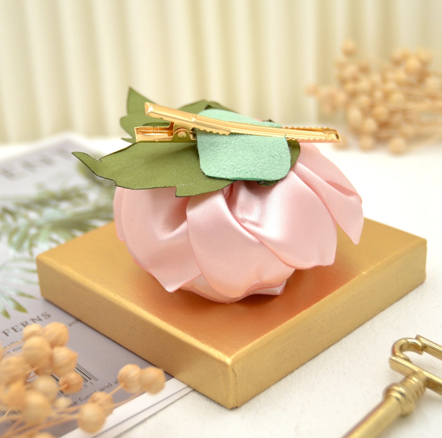 Rosa Rose fürs Haar | Blumenhaarclip "Kiss Me" mit rosa Blüte und Blättern aus Satin